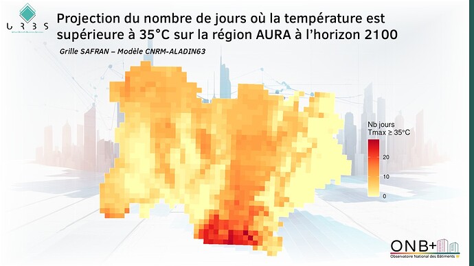 Au sein de la base IMOPE, U.R.B.S. a fait le choix d’intégrer différents indicateurs climatiques issues de ces projections. Nous considérons le modèle climatique « CNRM-ALADIN63 » piloté par CNRM-CERFACS-CNRM-CM5