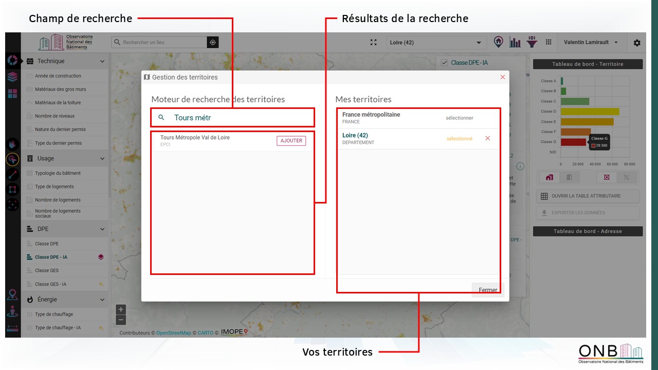 Dans la fenêtre qui s’ouvre vous pouvez ensuite rechercher , ajouter et gérer le ou les territoires sur lesquels vous souhaitez travailler.