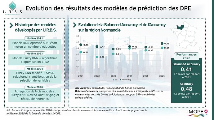 Depuis le premier modèle de prédiction des DPE réalisé en 2021, U.R.B.S. travaille de manière continue à l’amélioration de ses modèles prédictifs.