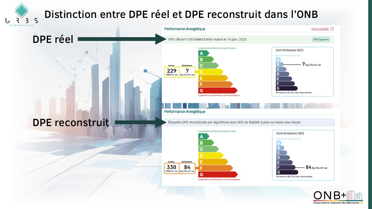 Réponse, en bref Pour chaque adresse, nous faisons le choix d’un DPE de référence lorsqu’il en existe au moins un. Il s’agit soit du DPE logement le plus récent ou s’il existe du DPE de la copropriété. Dans la version ONB+ il est possible d’avoir accès à toute la liste des DPE réalisés depuis 2021.
