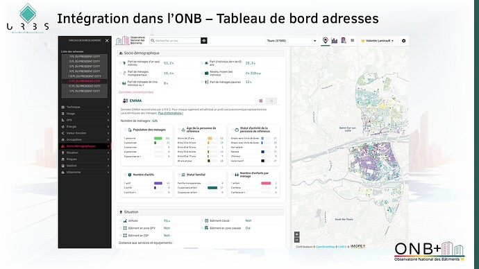 Dans la table annexe EMMA (Évaluation Modélisée des Ménages à l’Adresse) accessible dans la base IMOPE, les caractéristiques socio-économiques (profil des ménages) sont attibués à chaque logement de manière indépendante. L’attribution des caractéristiques socio-économiques à une maille plus fine permet de donner une dimension nouvelle à la connaissance du parc bâti et de venir concrètement en appui aux politiques publiques de l’habitat (notamment le aller/vers). Par exemple, cela permet d’affiner les stratégies de rénovation énergétique des bâtiments avec un ciblage en fonction de la structure de la population, du niveau de revenu, de la taille des ménages et du DPE.