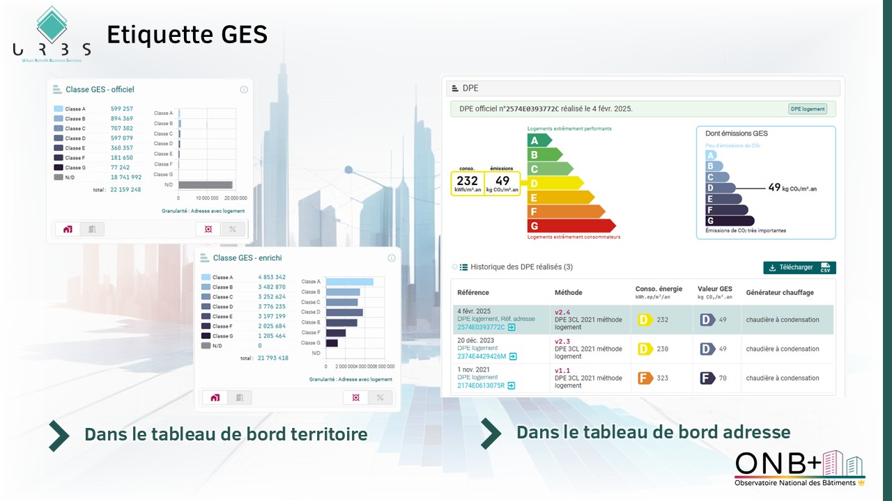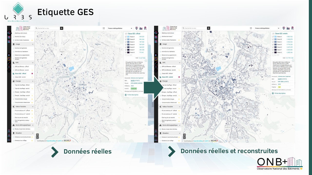 Les étiquettes GES proviennent de deux sources distinctes : la base des DPE de l’ADEME et les algorithmes de prédiction d’U.R.B.S.