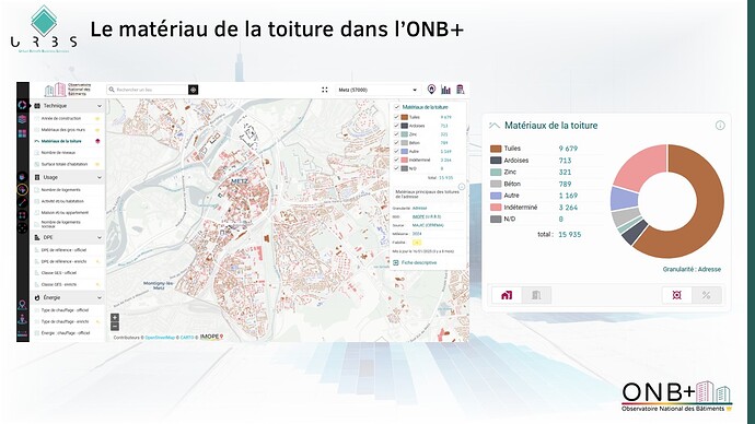 Le matériau de la toiture est un attribut grand public. Il est disponible dans l’ONB dans tous les outils : cartographie, tableaux de bord et outil de ciblage et de prospection.