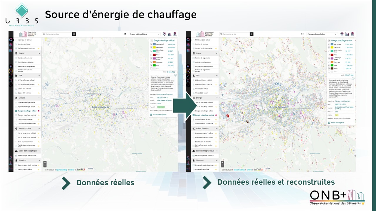 La source d’énergie de chauffage réelle est un attribut grand public. Il est disponible dans l’ONB dans tous les outils : cartographie, tableaux de bord et outil de ciblage et de prospection. La source d’énergie de chauffage reconstruite est réservée aux utilisateurs ayant une licence.